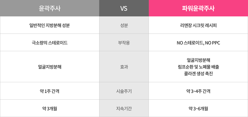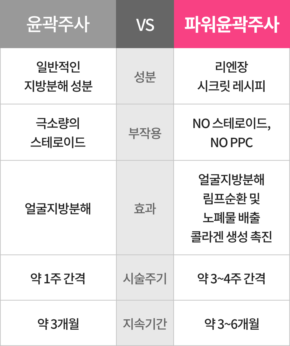 시크릿 레시피로 배합하여 개발한 파워윤곽주사!